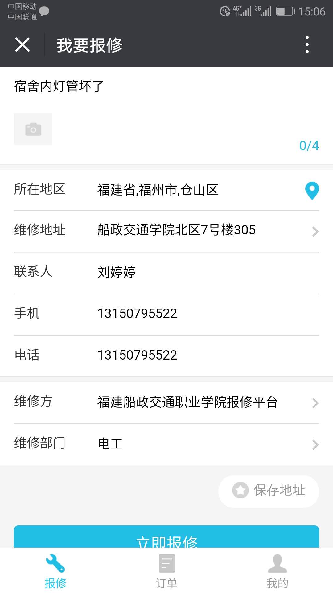 2、進(jìn)入報修頁面,填寫報修內(nèi)容后點(diǎn)擊立即報修。(如圖)