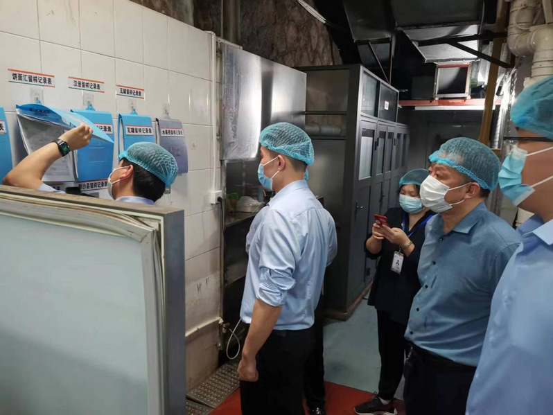 檢查組一行全面檢查了食堂疫情防控管理、食品進貨臺賬、員工健康管理、食品留樣、原料控制、加工制作過程、備餐供餐與配送、場所和設(shè)備設(shè)施清潔維護、餐飲具清洗消毒等。針對檢查發(fā)現(xiàn)的問題,要求立行立改。