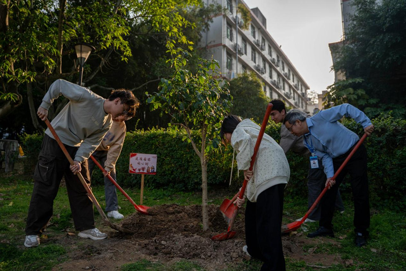 最后,在“一站式”學(xué)生社區(qū)“開心農(nóng)場(chǎng)”勞動(dòng)實(shí)踐基地,陳常暉副院長(zhǎng)與少數(shù)民族學(xué)生共同種下“民族團(tuán)結(jié)同心樹”。