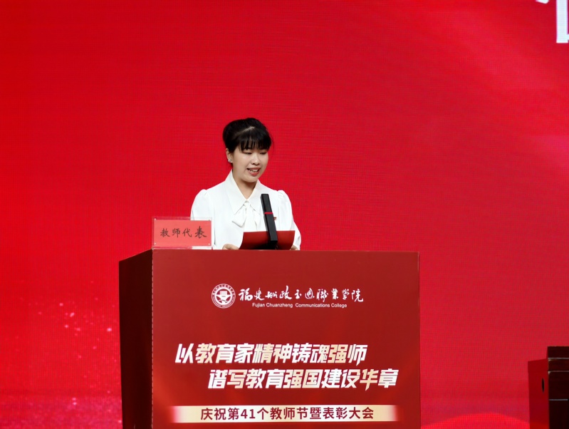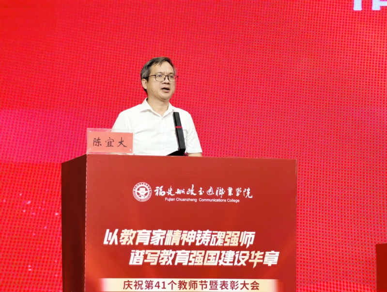 9月10日下午,我院舉行慶祝第41個教師節(jié)暨表彰大會。黨委書記陳宜大,黨委副書記、院長陳群,黨委副書記張輝,紀(jì)委書記謝建山,副院長陳常暉出席會議。會議由陳常暉主持。全體教職工、榮退人員代表、福建閩清職業(yè)中專學(xué)校代表、校友代表、學(xué)生代表歡聚一堂,共同參加此次會議。本次慶祝表彰大會采用線下會場和線上直播同步進行。