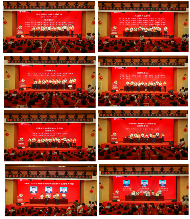 會議在莊嚴(yán)的國歌聲中拉開序幕。大會對2024-2025學(xué)年獲得學(xué)院優(yōu)秀教師、先進教育工作者、優(yōu)秀輔導(dǎo)員、優(yōu)秀班主任,福建閩清職業(yè)中專學(xué)校優(yōu)秀教師和優(yōu)秀班主任,享受政府特殊津貼高技能人才、福建省高層次人才、極地科考先鋒,福建省教學(xué)成果獎特等獎、一等獎,世界職業(yè)院校技能大賽金獎指導(dǎo)教師,第二批國家級教師教學(xué)創(chuàng)新團隊,全國樣板支部、全國“雙帶頭人”教師黨支部書記“強國行”專項團隊,全國模范職工之家、福建省勞模工匠創(chuàng)新工作室、福建省工匠學(xué)院的個人和團隊代表進行頒獎。