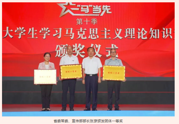 為深入學習貫徹習近平總書記關于學校思政課建設的重要指示精神,貫徹落實全國、全省教育大會精神,堅持不懈用習近平新時代中國特色社會主義思想鑄魂育人,9月27日,由中共福建省委宣傳部、中共福建省委教育工委主辦,福建省高校思想政治理論課教學指導委員會、福建教育電視臺承辦的第十季福建省高校大學生學習馬克思主義理論“一‘馬’當先”知識競賽總決賽在福建農(nóng)林大學成功舉辦。我院黨委書記陳宜大攜師生代表參與活動。
