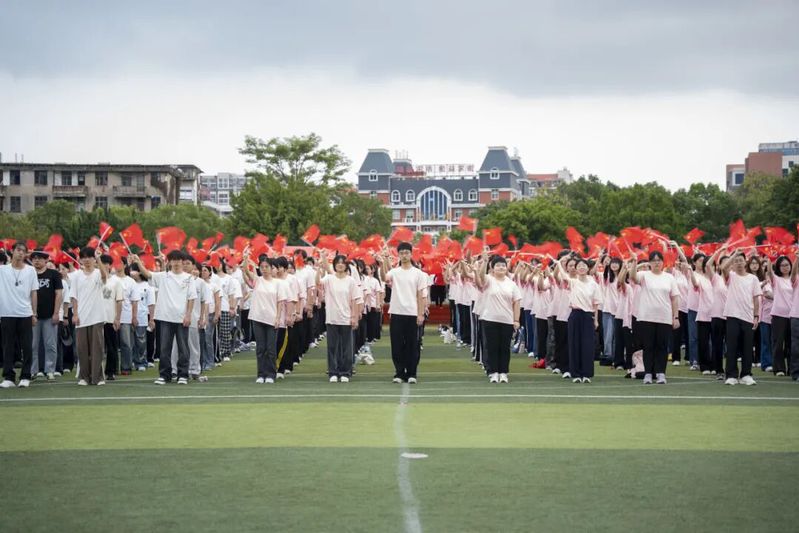 國(guó)歌余韻尚在校園回蕩,師生們已高舉國(guó)旗,將滿腔熱忱化作鏗鏘吶喊:“青春為中國(guó)式現(xiàn)代化挺膺擔(dān)當(dāng),強(qiáng)國(guó)復(fù)興有我!強(qiáng)國(guó)復(fù)興有我!強(qiáng)國(guó)復(fù)興有我!” 嘹亮的口號(hào),既是對(duì)祖國(guó)的深情告白,更將復(fù)興征程上的青春誓言,牢牢鐫刻在晨光里、心底間。