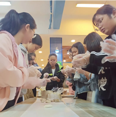 活動中大家熱情高漲,積極參與,每位同學各司其職,配合默契,洗菜、切菜、拌餡、包餃子,忙得不亦樂乎。
