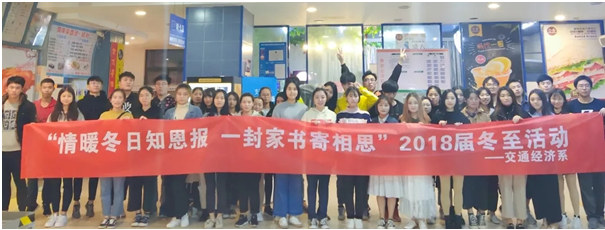 在中國傳統(tǒng)節(jié)日冬至來臨之際,為了豐富同學們的課余生活,加強同學之間的交流與團結,讓遠離家人的同學們感受到來自交通經(jīng)濟系這個大家庭的溫暖,12月19日晚,我系在南區(qū)食堂三樓舉辦了冬至活動,為這個寒冷的冬天注入了融融暖意。