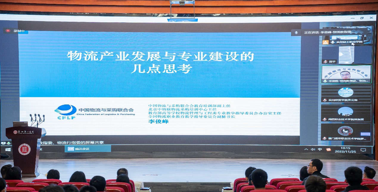 會議由福建船政交通職業(yè)學(xué)院和泉州輕工職業(yè)學(xué)院聯(lián)合承辦,采用線上線下結(jié)合的形式進行,線下會場設(shè)在泉州輕工職業(yè)學(xué)院。全國物流職業(yè)教育教學(xué)指導(dǎo)委員會秘書長郭肇明、副秘書長李俊峰,福建省物流行業(yè)職業(yè)教育指導(dǎo)委員會主任肖舒平以及來自企業(yè)和院校的121名委員代表出席了會議。