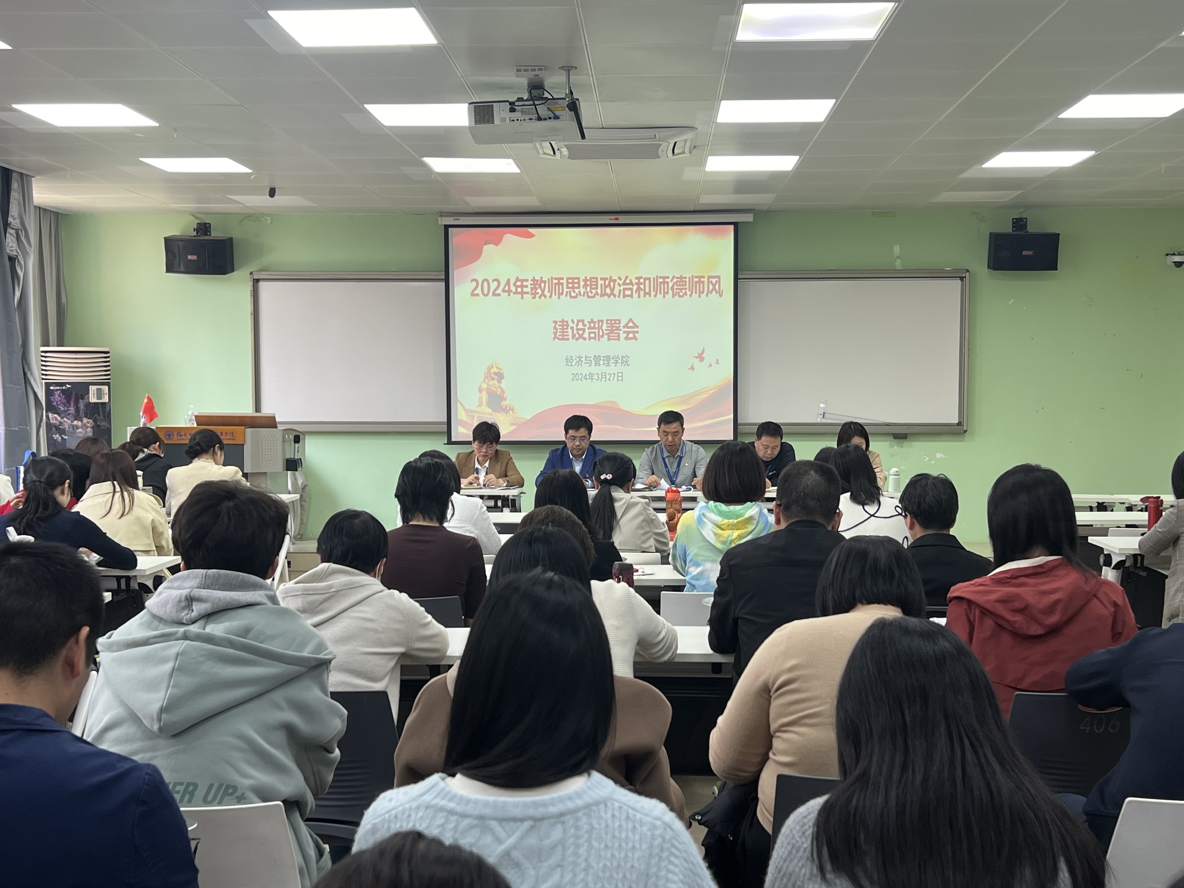 為不斷提高全體教師的思想政治素質(zhì)和職業(yè)道德修養(yǎng),突出全方位、全過(guò)程師德養(yǎng)成,2024年3月27日,經(jīng)濟(jì)與管理學(xué)院召開了2024年教師思想政治和師德師風(fēng)建設(shè)部署會(huì)。學(xué)院黨政領(lǐng)導(dǎo)、全體教職工出席會(huì)議。會(huì)議由院長(zhǎng)房曰榮同志主持。