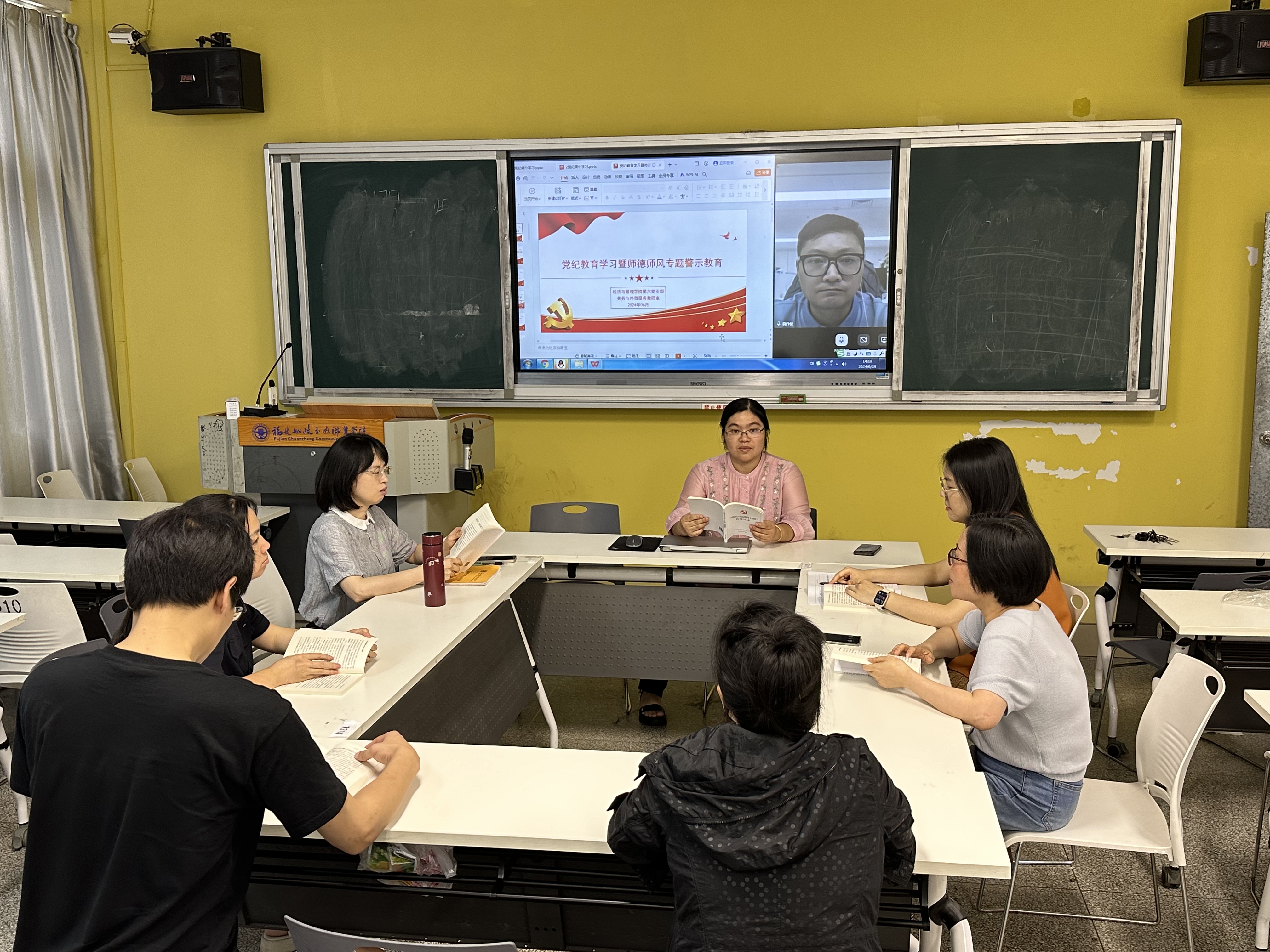6月19日,為深入學(xué)習(xí)貫徹習(xí)近平總書記關(guān)于黨紀(jì)學(xué)習(xí)教育的重要講話和重要指示精神,推動(dòng)全面從嚴(yán)治黨向縱深發(fā)展,進(jìn)一步加強(qiáng)黨的紀(jì)律建設(shè)和黨員教師師德師風(fēng)建設(shè),弘揚(yáng)高尚師德,恪守教育底線,黨總支、各黨支部、各教研室開展黨紀(jì)教育學(xué)習(xí)暨師德師風(fēng)專題警示教育學(xué)習(xí)活動(dòng)。