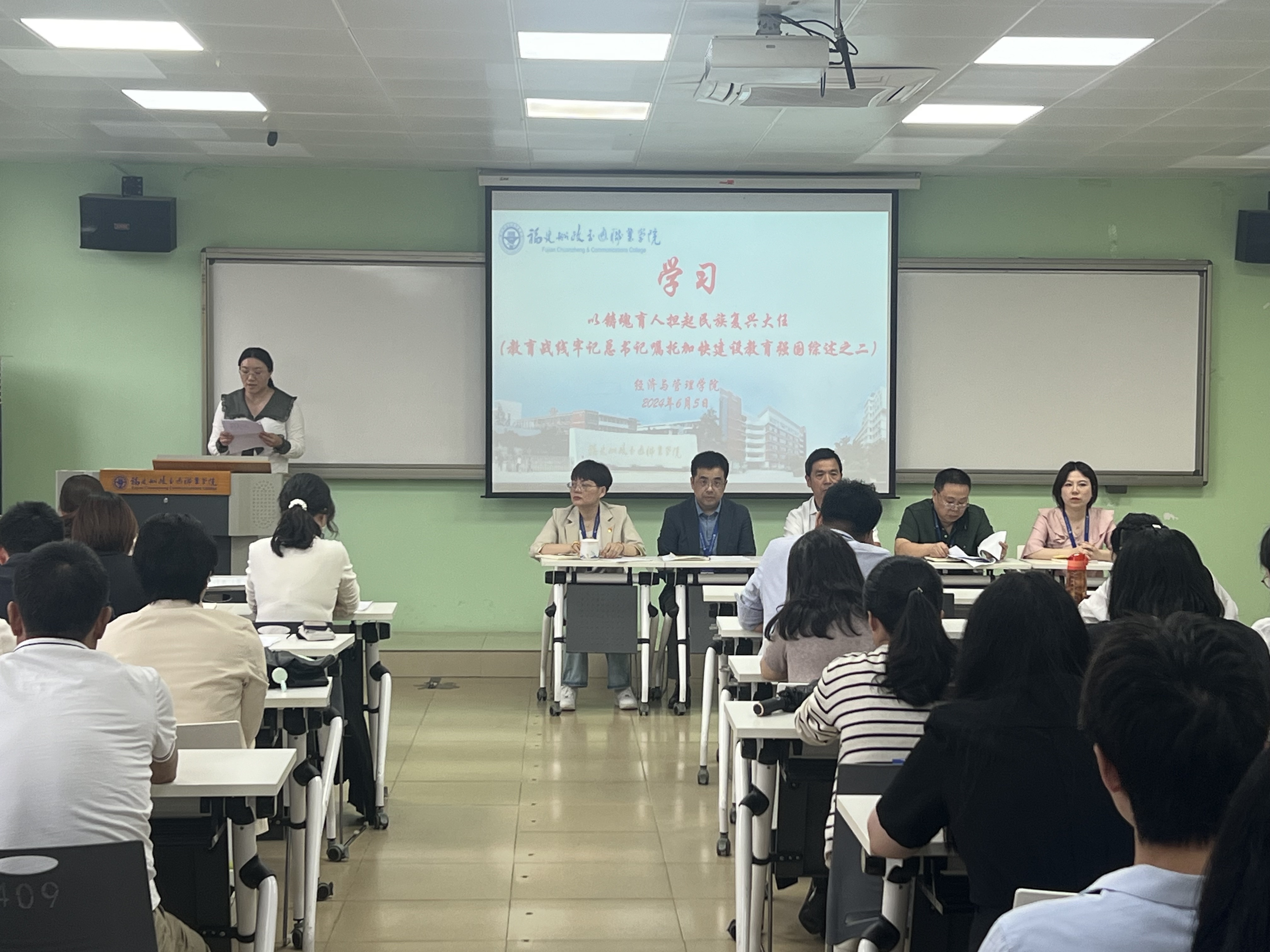 6月5日,經(jīng)濟(jì)管理學(xué)院召開全體教職工大會(huì),院長房曰榮領(lǐng)學(xué)了《習(xí)近平對學(xué)校思政課建設(shè)作出重要指示》,引導(dǎo)我院教師努力培養(yǎng)更多讓黨放心、愛國奉獻(xiàn)、擔(dān)當(dāng)民族復(fù)興重任的時(shí)代新人,提高課程思政教育教學(xué)質(zhì)效。會(huì)上,教師代表傅一丹、林潔瑩領(lǐng)學(xué)了“以教育強(qiáng)國服務(wù)支撐中國式現(xiàn)代化”“以鑄魂育人擔(dān)起民族復(fù)興大任”“以教育之強(qiáng)夯實(shí)國家富強(qiáng)之基”“以教育之力厚植人民幸福之本”等教育戰(zhàn)線牢記總書記囑托加快建設(shè)教育強(qiáng)國系列綜述,進(jìn)一步增強(qiáng)教師的政治意識(shí)、政治能力,呼吁全體教師以高度的責(zé)任感和使命感,堅(jiān)守教育初心,樹立良好的師德師風(fēng)。
