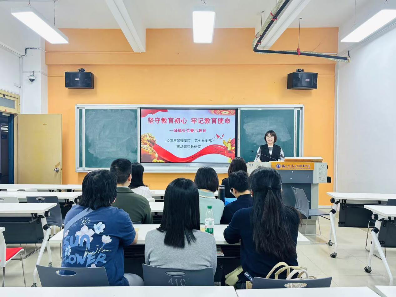 11月20日下午,市場營銷教研室在求實樓406教室開展了師德師風(fēng)警示教育專題學(xué)習(xí)會。本次會議由第七黨支部副書記謝霓老師主持,教研室全體教師參與討論,旨在加強(qiáng)教師隊伍的職業(yè)道德建設(shè),進(jìn)一步提升教師的師德素養(yǎng)。