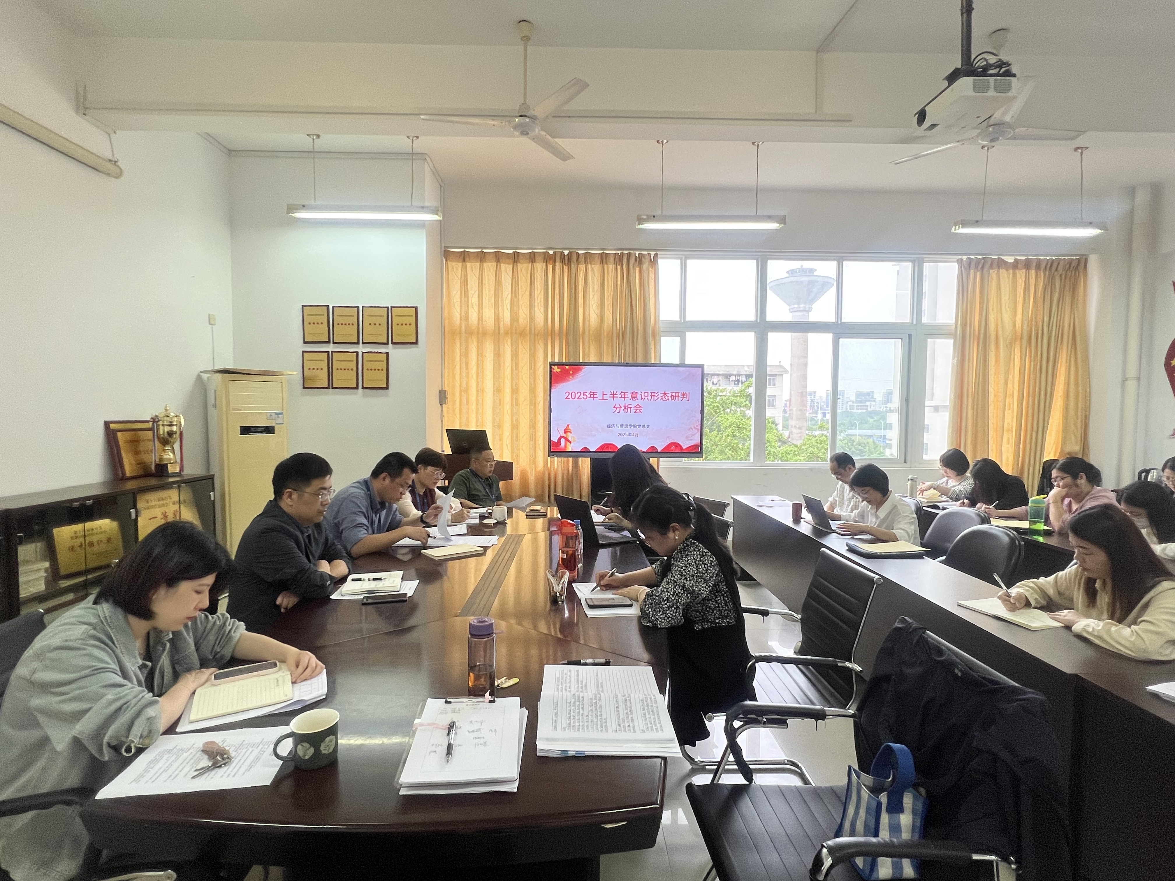 為深入貫徹落實習(xí)近平總書記關(guān)于意識形態(tài)工作的重要論述,為全面貫徹黨中央、學(xué)院黨委關(guān)于意識形態(tài)工作的決策部署,進(jìn)一步強化風(fēng)險防控意識切實加強學(xué)院意識形態(tài)工作,2025年4月23日,經(jīng)濟與管理學(xué)院2024-2025學(xué)年第二學(xué)期意識形態(tài)分析研判會在福船園求實樓412會議室召開。學(xué)院副科級及以上干部、各黨支部書記、副書記、各教研室主任、全體輔導(dǎo)員參加了會議。會議由黨總支副書記阮毅主持。