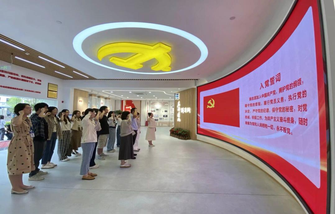 參觀結(jié)束后,黨總支書記陳慧作為領(lǐng)誓人帶領(lǐng)全體黨員同志整齊列隊,舉起右拳,面向黨旗莊嚴宣誓。錚錚誓言,字字千鈞,不僅表達了黨員們對黨的無限忠誠和為共產(chǎn)主義事業(yè)奮斗終身的堅定決心,更如警鐘長鳴,喚醒了每一位黨員的入黨初心,黨員們紛紛表示將更加堅定理想信念,明確奮斗方向,秉持新時代“航標燈”精神,發(fā)揮黨員先鋒模范作用,用敬業(yè)奉獻書寫使命擔當,以實際行動踐行入黨誓詞,為黨的事業(yè)不懈奮斗。