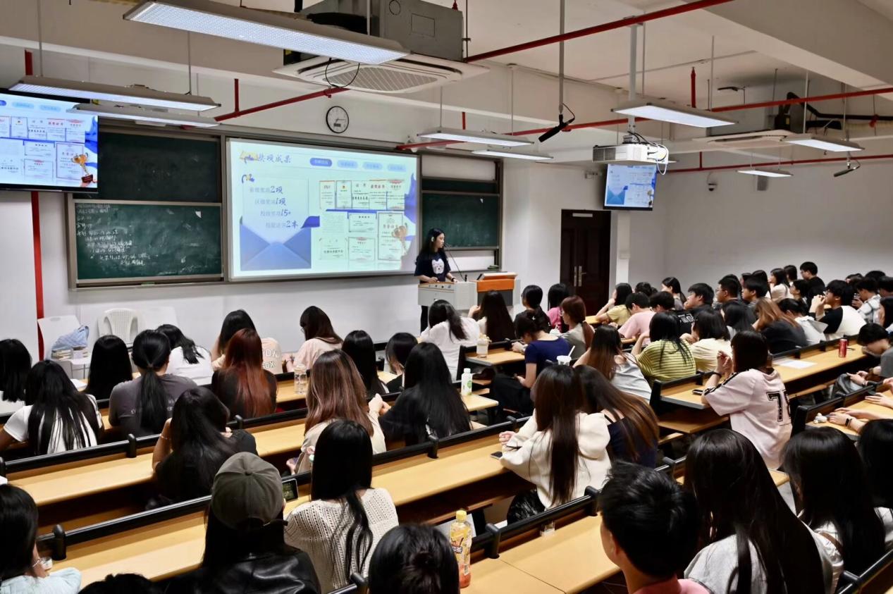 此外,活動還邀請了國家獎學金獲得者汪煜茹,以“學術領航,知行致遠”為主題,從專業(yè)學習、社會實踐、學科競賽三個維度進行深度剖析。通過分享項目參與經驗與專業(yè)領域探索路徑,她倡導“以實踐促學、以賽促練”的成長理念,同時系統(tǒng)解析時間管理矩陣與高效學習策略,為同學們制定學業(yè)規(guī)劃、提升綜合素養(yǎng)提供可操作性指導,助力明晰個人發(fā)展路徑。