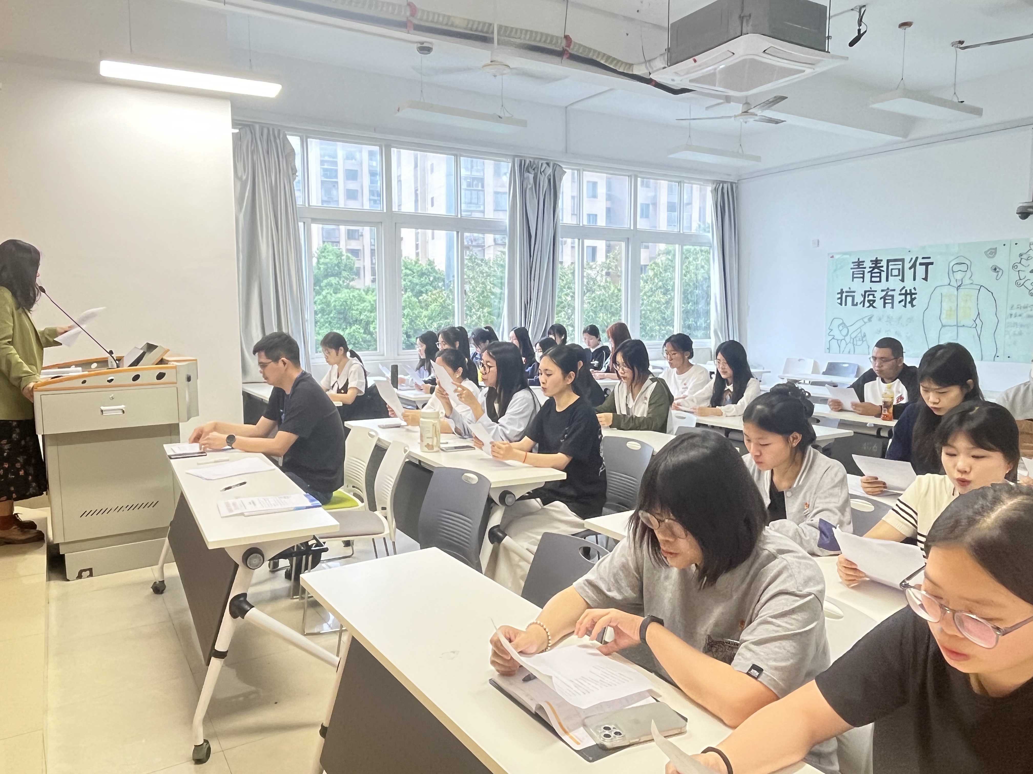 隨后,在游鏡瑩老師的帶領(lǐng)下,參加人員齊聲誦讀經(jīng)典紅色詩文《讀中國》,表達對祖國的愛與贊美。