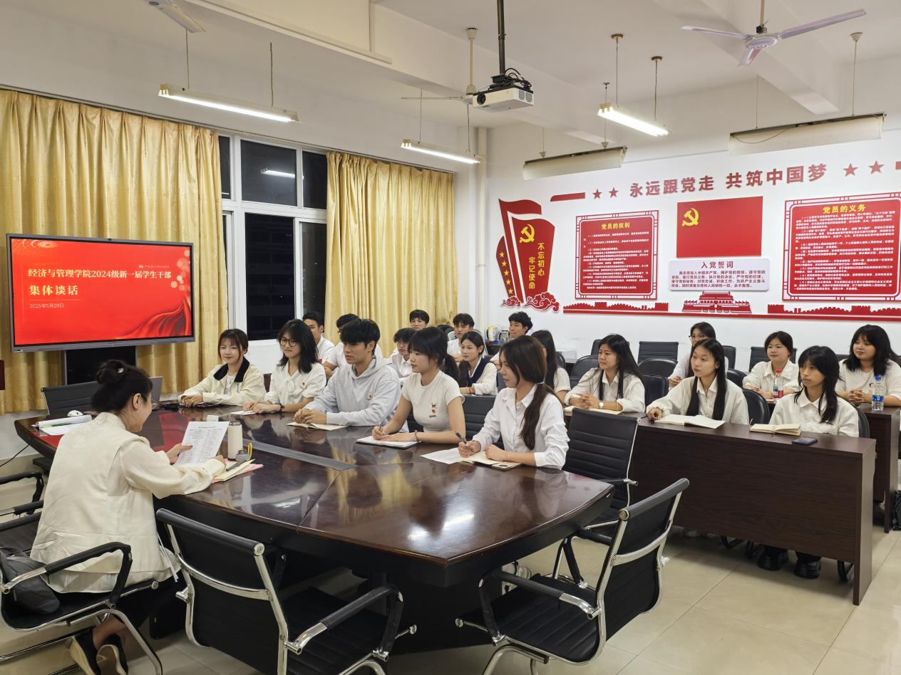 5月29日,經(jīng)濟(jì)與管理學(xué)院召開2024級(jí)新一屆學(xué)生干部集體談話會(huì)。學(xué)院黨總支書記陳慧、學(xué)院團(tuán)委書記傅一丹及全體新任學(xué)生干部參加了會(huì)議。