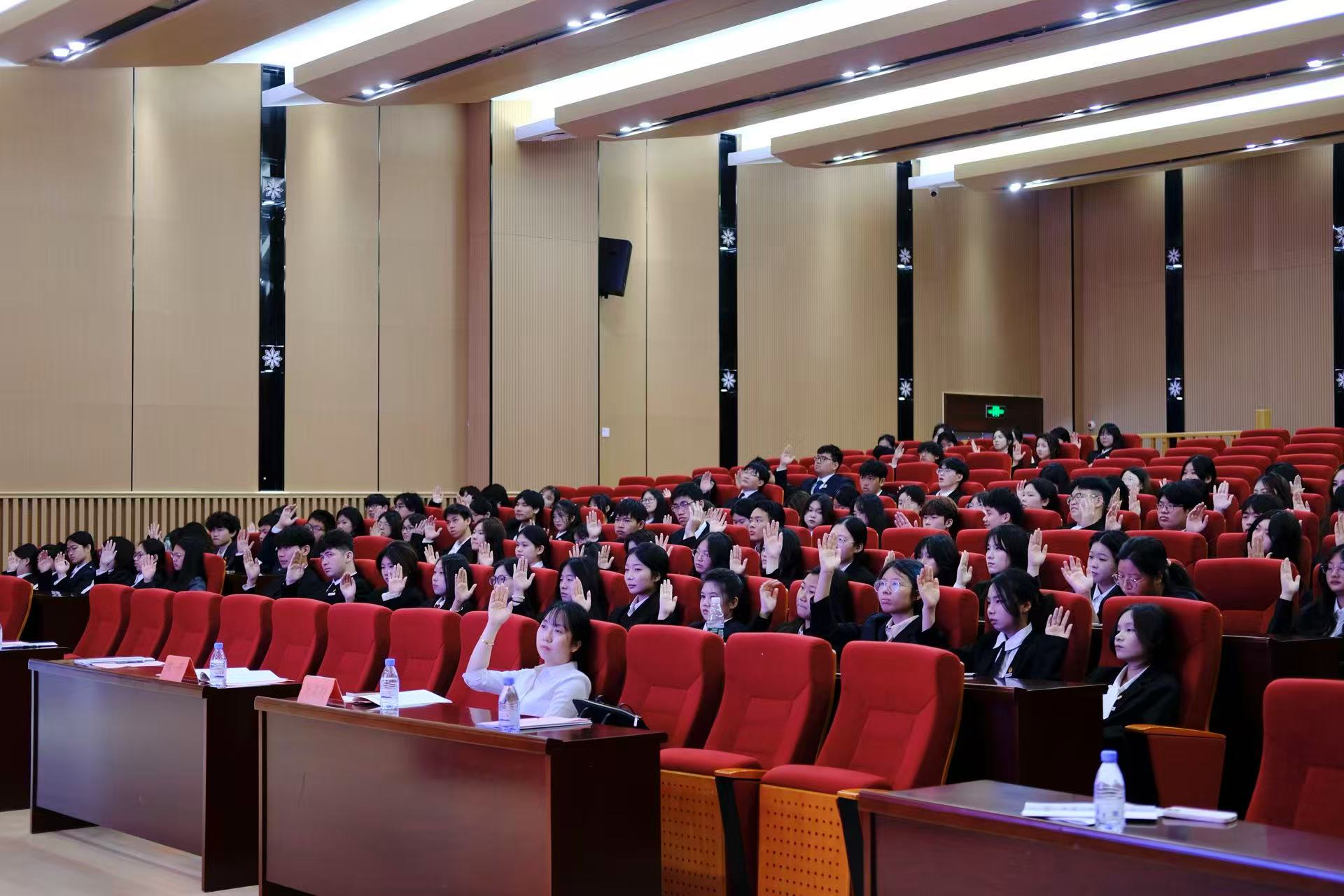學(xué)院團(tuán)委副書記吳霜婷致閉幕詞。她號召全院青年將個人理想與國家發(fā)展緊密相連,期望新一屆學(xué)生會主席團(tuán)以大會為新起點(diǎn),貫徹指示精神,提升自我,創(chuàng)新工作,服務(wù)同學(xué)成長,引領(lǐng)廣大同學(xué)融入學(xué)院與國家發(fā)展大局。她勉勵全體同學(xué)珍惜韶華,提升綜合能力,踐行青春誓言。大會在激昂的校歌《開創(chuàng)燦爛的未來》中勝利閉幕。