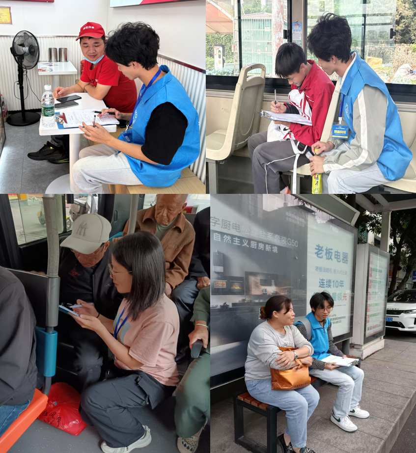 調(diào)查團(tuán)隊(duì)采用“點(diǎn)面結(jié)合、動靜相輔”的科學(xué)方法,系統(tǒng)推進(jìn)數(shù)據(jù)采集工作。首日,團(tuán)隊(duì)深入龍賢、俊賢、西關(guān)等18個街道社區(qū),面向社區(qū)居民開展問卷調(diào)查,重點(diǎn)了解日常出行的整體滿意度與共性需求。隨后兩日,團(tuán)隊(duì)轉(zhuǎn)戰(zhàn)府頭門、永輝超市、陽光城及火車站等核心公交樞紐,在高峰與平峰時段分散布點(diǎn),確保樣本覆蓋不同線路、不同出行目的的乘客。同時,團(tuán)隊(duì)分組進(jìn)行跟車調(diào)查,實(shí)地記錄車輛運(yùn)行狀況、車廂環(huán)境及乘客實(shí)時反饋,從而在靜態(tài)問卷之外,補(bǔ)充了動態(tài)的、場景化的觀察數(shù)據(jù)。通過多層次、立體化的調(diào)查方式,有效保障了數(shù)據(jù)來源的廣泛性與結(jié)構(gòu)代表性。