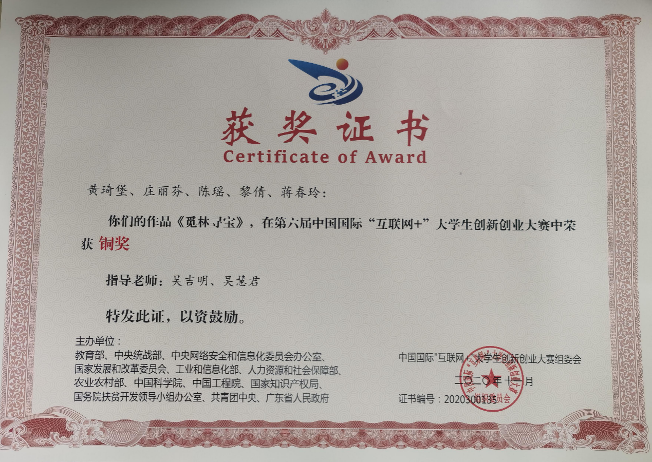 第六屆中國國際“互聯(lián)網(wǎng)+”大學生創(chuàng)新創(chuàng)業(yè)大賽銅獎