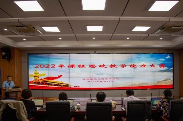 為持續(xù)推進我院課程思政建設(shè)工作,落實好“立德樹人”根本任務(wù),10月15日,我院在行政樓六樓第一會議室組織舉辦了2022年課程思政教學(xué)能力大賽決賽。學(xué)院副院長張祖柱教授、廈門理工學(xué)院陳文哲教授、福州大學(xué)祁皚教授、福建中醫(yī)藥大學(xué)許克祥研究員、福建師范大學(xué)陳新星副教授、閩江學(xué)院阮曉鶯教授、福建教育學(xué)院邰鷺明教授和我院李斌教授出席,各二級學(xué)院院領(lǐng)導(dǎo)、教研室主任和教師代表共100多人參加了觀摩學(xué)習(xí)。