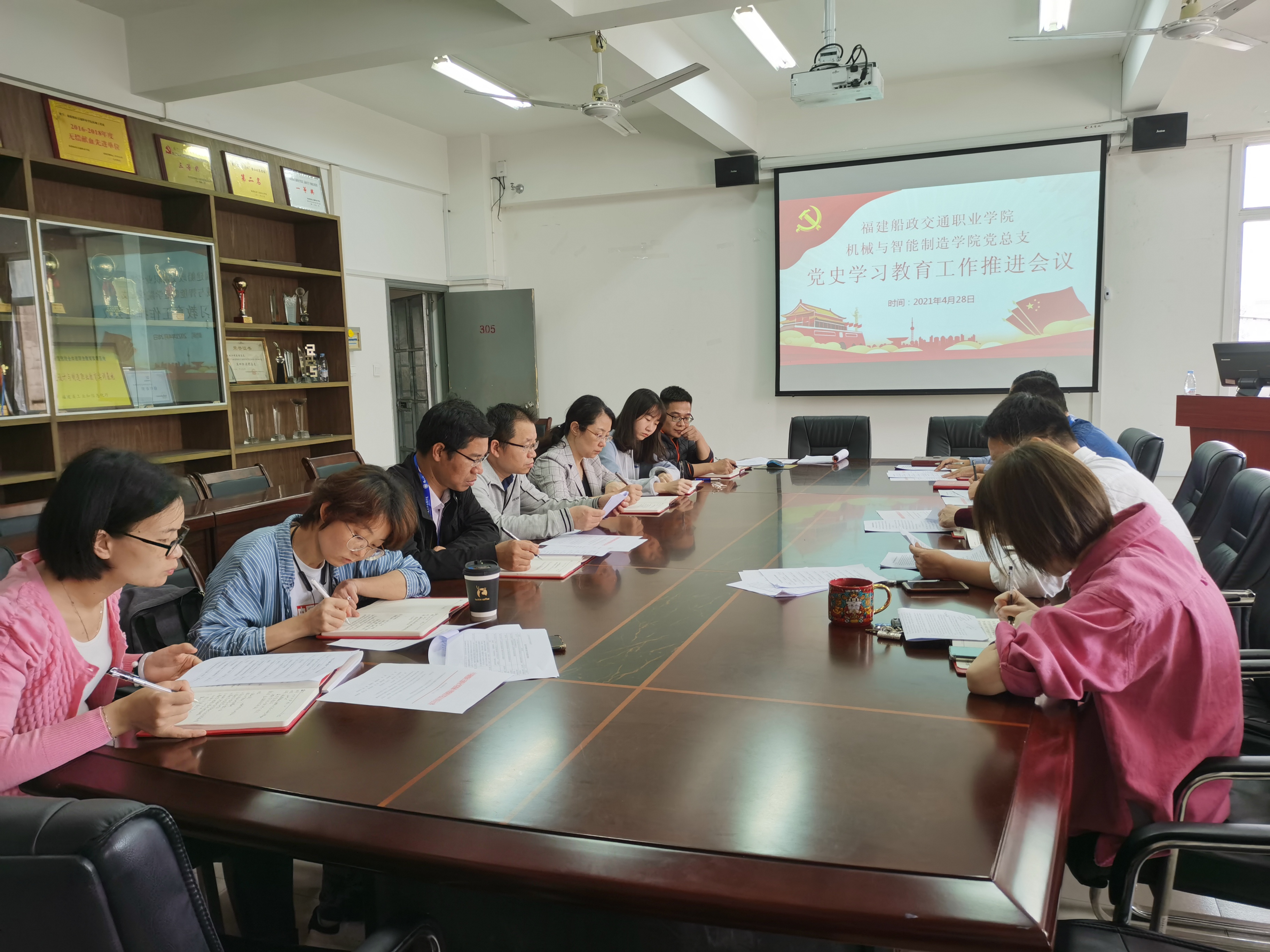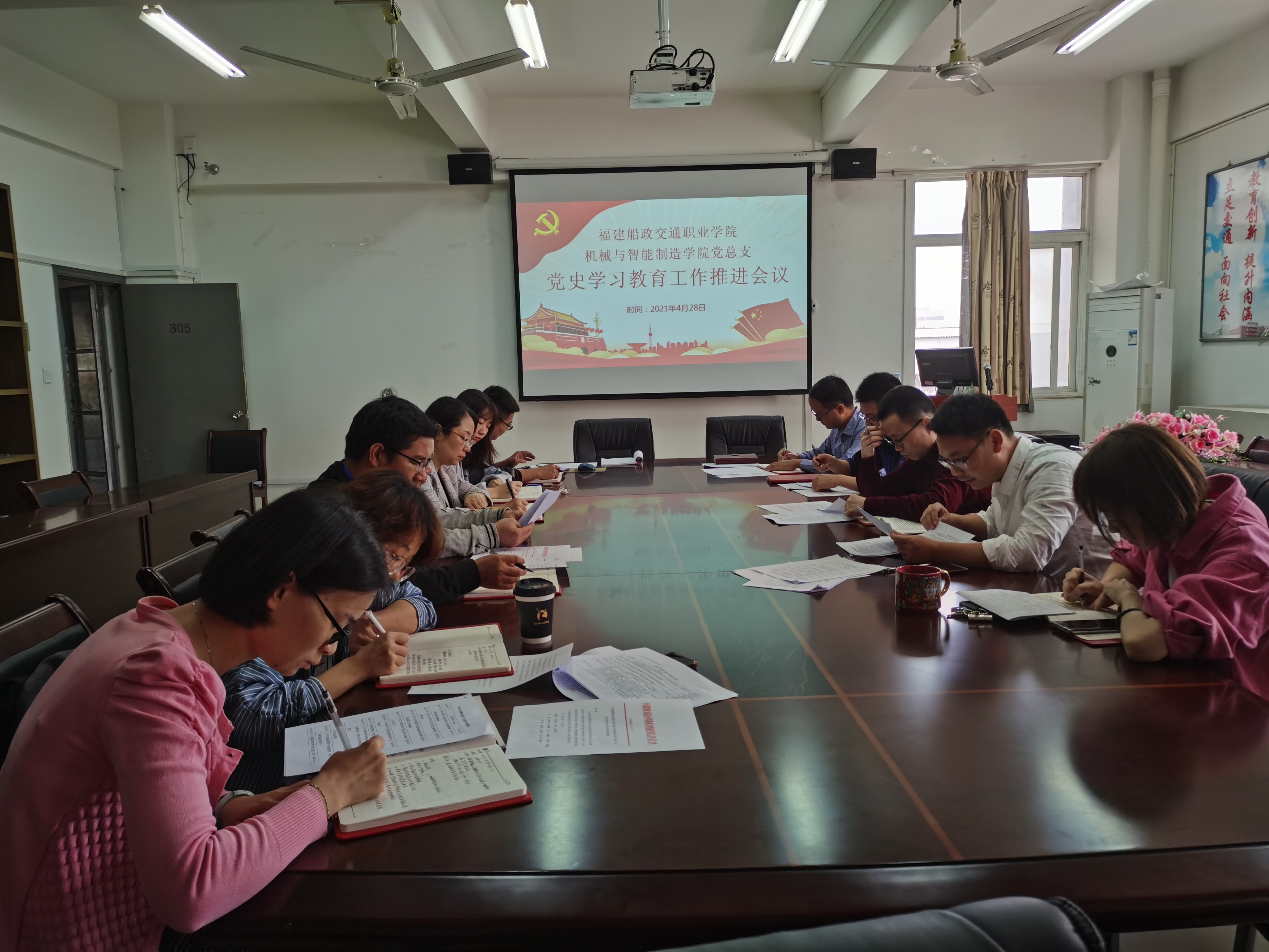 會議通過了《中共福建船政交通職業(yè)學院機械與智能制造學院總支委員會黨史學習教育實施方案》《中共福建船政交通職業(yè)學院機械與智能制造學院總支委員會關于成立黨史學習教育領導小組的通知》《中共福建船政交通職業(yè)學院機械與智能制造學院總支委員會關于成立黨史學習教育宣講團的通知》以及《中共福建船政交通職業(yè)學院機械與智能制造學院總支委員會關于成立“再學習、再調(diào)研、再落實”工作領導小組的通知》。