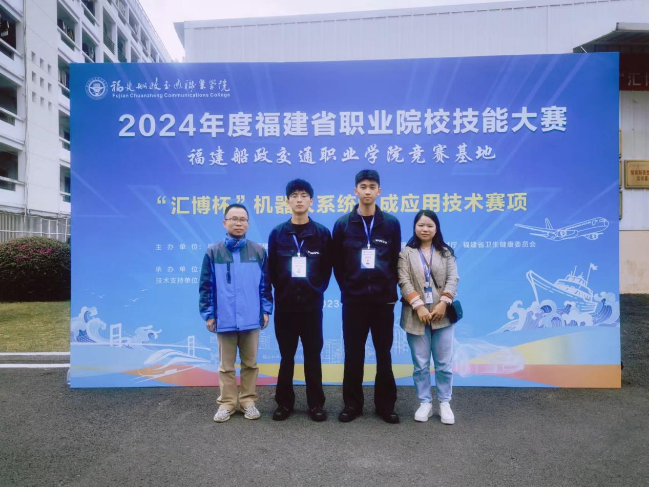 2023年12月8日--12月10日,來自全省18所高職院校的18支代表隊(duì)齊聚福建船政交通職業(yè)學(xué)院參加2024年福建省職業(yè)院校技能大賽(高職組)機(jī)器人系統(tǒng)集成應(yīng)用技術(shù)賽項(xiàng)的比賽。經(jīng)過兩天緊張激烈的比賽,支部黨員楊開懷、童曉薇兩位老師指導(dǎo)的陳育凱、陳世衛(wèi)同學(xué)獲得一等獎(jiǎng)。