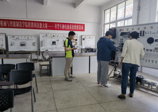 比賽伊始,二級(jí)學(xué)院分管領(lǐng)導(dǎo)作了重要講話,就此次重型車輛維修比賽的必要性作了重要解釋,并對(duì)參賽選手寄予了深厚的期望。并宣讀此次比賽章程。比賽正式開始,選手對(duì)電氣試驗(yàn)臺(tái)架,綜合故障診斷操作嫻熟,安全防護(hù)到位。最后是評(píng)分過(guò)程,經(jīng)過(guò)現(xiàn)場(chǎng)裁判的認(rèn)真細(xì)致評(píng)分,評(píng)出了本次比賽的一、、三等獎(jiǎng)。比賽結(jié)束后;葉惠娟老師對(duì)本次大賽作出了重要點(diǎn)評(píng),鼓勵(lì)同學(xué)們勤于動(dòng)手,鍛煉自己的實(shí)踐能力。此次大賽圓滿地落下了帷幕。