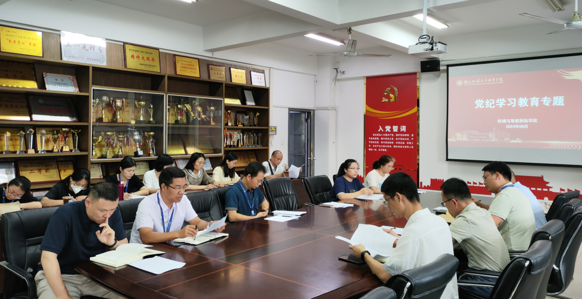 6月12日下午,機(jī)械與智能制造學(xué)院黨總支理論學(xué)習(xí)中心組召開《中國共產(chǎn)黨紀(jì)律處分條例》專題學(xué)習(xí)會(huì)議,會(huì)議由黨總支副書記肖秀林主持,學(xué)院領(lǐng)導(dǎo)班子成員、黨總支委員、各支部書記及支部委員參加會(huì)議。