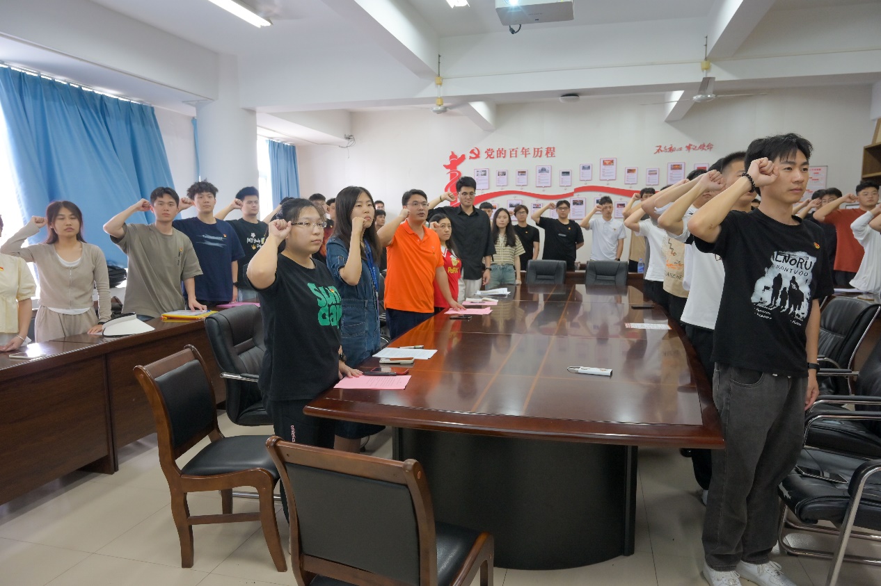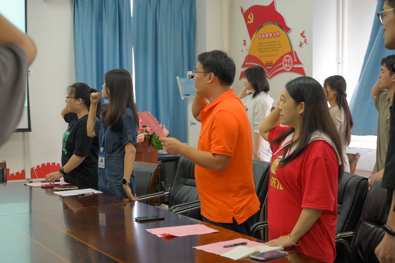 大會(huì)伊始,由黨總支副書記肖秀林帶領(lǐng)大家面對(duì)黨旗,重溫入黨誓詞。