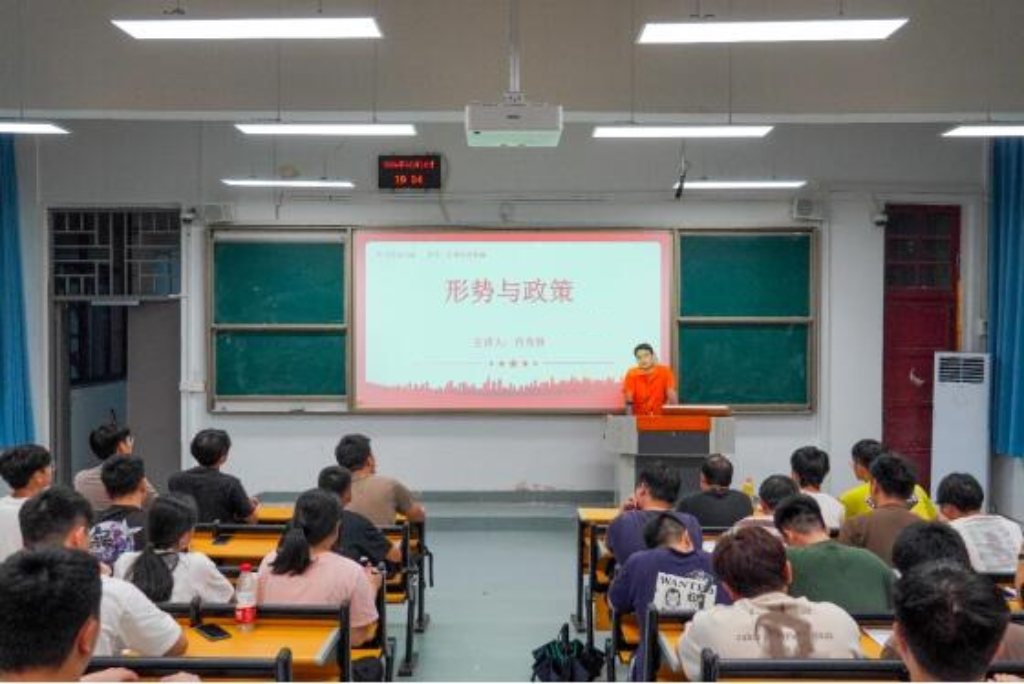 機(jī)械與智能制造學(xué)院黨總支副書記肖秀林,于2024年6月17日晚上在福道園八號(hào)樓的第一階梯教室就“世界變亂交織,中國篤行擔(dān)當(dāng)”為主題,為22級(jí)部分學(xué)生上了一堂形勢(shì)與政策課。