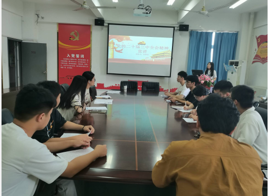 中國共產(chǎn)黨第二十屆中央委員會第三次全體會議于2024 年7月15日至18日在北京舉行。全會聽取和討論了習(xí)近平總書記受中央政治局委托所作的工作報告,審議通過了《中共中央關(guān)于進(jìn)一步全面深化改革、推進(jìn)中國式現(xiàn)代化的決定》。9月12日,機(jī)械與智能制造學(xué)院第六黨支部書記吳夢煒在26#305召開進(jìn)行黨的二十屆三中全會精神宣講,全體支部成員參加。