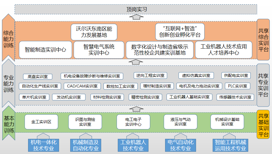 圖3 機械與智能制造專業(yè)群組群共享實訓體系圖