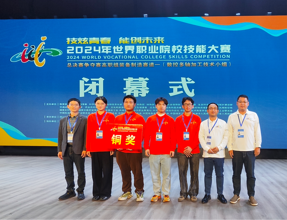 10月26日至30日,2024年世界職業(yè)院校技能大賽總決賽爭(zhēng)奪賽高職組裝備制造賽道一(數(shù)控多軸加工技術(shù)小組)在四川工程職業(yè)技術(shù)大學(xué)舉行。來(lái)自全國(guó)30個(gè)省(區(qū)、市)的59個(gè)參賽隊(duì)、199名參賽選手同臺(tái)競(jìng)技、展示風(fēng)采。由福建船政交通職業(yè)學(xué)院機(jī)械與智能制造學(xué)院曾思通副院長(zhǎng)帶隊(duì),陳太麗、謝祖強(qiáng)老師為指導(dǎo),陳永鑫、張煒靚、連鑫峰、解烜組成的參賽隊(duì)代表福建省出戰(zhàn),憑借扎實(shí)的專業(yè)功底和出色的團(tuán)隊(duì)協(xié)作能力,勇奪銅獎(jiǎng)。