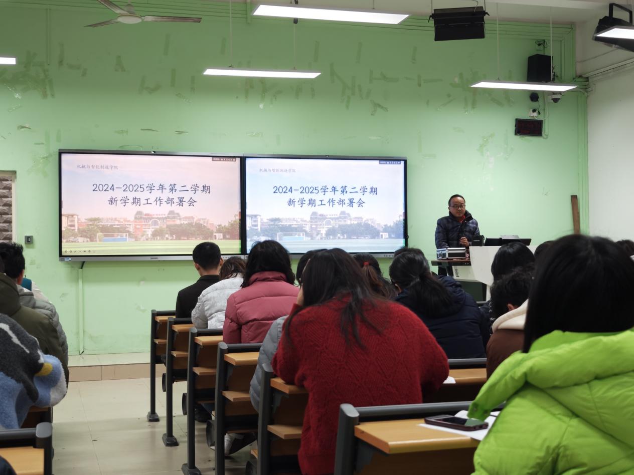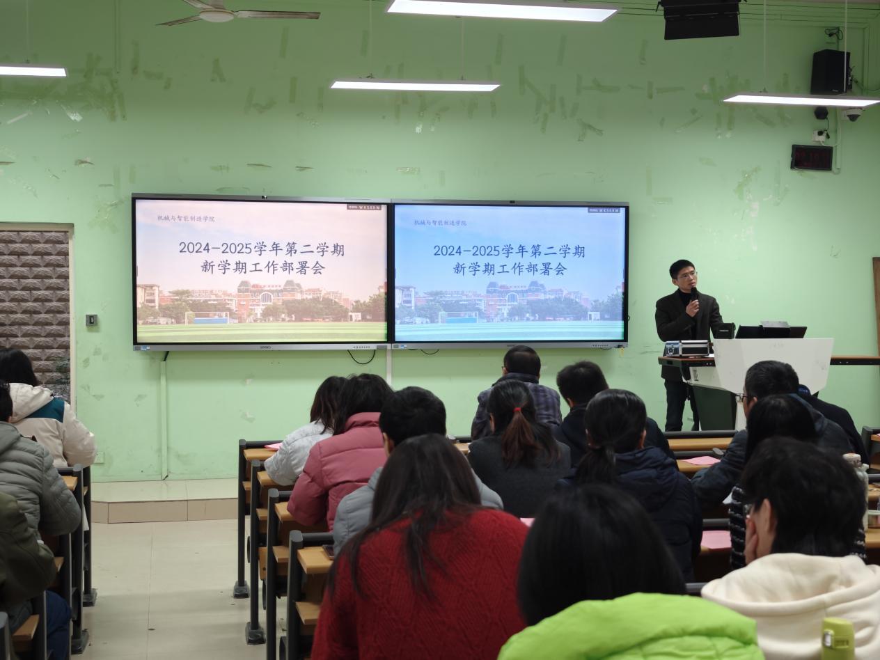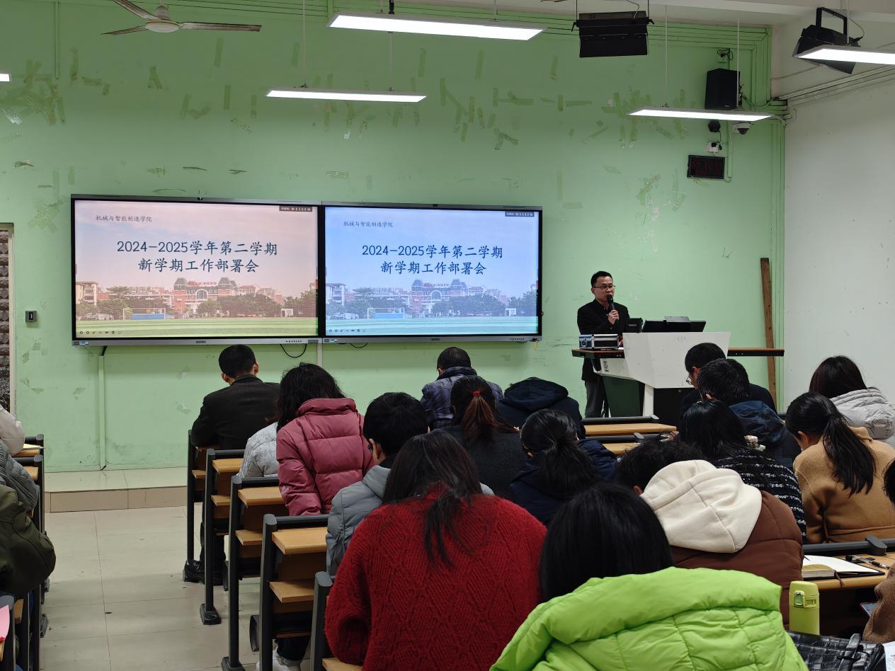 為明確新學(xué)期工作目標(biāo),統(tǒng)籌推進(jìn)各項工作任務(wù),2月19日下午,機械與智能制造學(xué)院在2號樓1-2召開2024-2025學(xué)年第二學(xué)期第一次全院大會暨新學(xué)期工作部署會。學(xué)院領(lǐng)導(dǎo)班子成員、全體教職工參加了會議。會議部署了2024-2025學(xué)年第二學(xué)期開學(xué)各項事宜和近期工作重點。