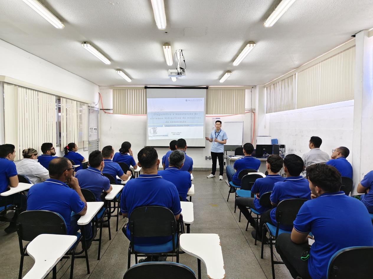 揭牌儀式后,福建船政交通職業(yè)學(xué)院教師團隊為巴西基地員工開展為期6天的專業(yè)技能培訓(xùn)。課程設(shè)置液壓驅(qū)動系統(tǒng)故障診斷、智能裝備電氣安全操作、工業(yè)機器人操作維護等模塊,采用“理論+實操”雙元教學(xué)模式,通過解剖液壓系統(tǒng)、電氣安全操作、電路故障排查維護等實踐訓(xùn)練,系統(tǒng)提升學(xué)員智能制造設(shè)備維護核心技能,同時為當?shù)嘏嘤?xùn)中心實訓(xùn)基地建設(shè)提供實地指導(dǎo)。