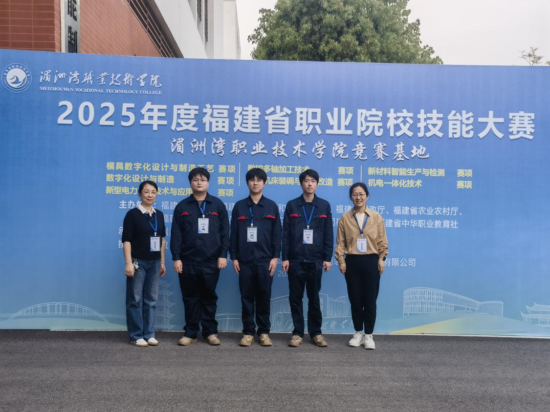 2025年4月10日至12日,福建省職業(yè)院校技能大賽(高職組)“新材料智能生產(chǎn)與檢測(cè)”賽項(xiàng)在湄洲灣職業(yè)技術(shù)學(xué)院舉行,我校機(jī)械與智能制造學(xué)院教師王欽娟、藍(lán)敏俐和學(xué)生陳海坤、王思超、連嘉勝組成的代表隊(duì)榮獲三等獎(jiǎng)。他們憑借扎實(shí)的專業(yè)技能和出色的團(tuán)隊(duì)協(xié)作能力,充分展現(xiàn)了我院學(xué)子的卓越風(fēng)采。