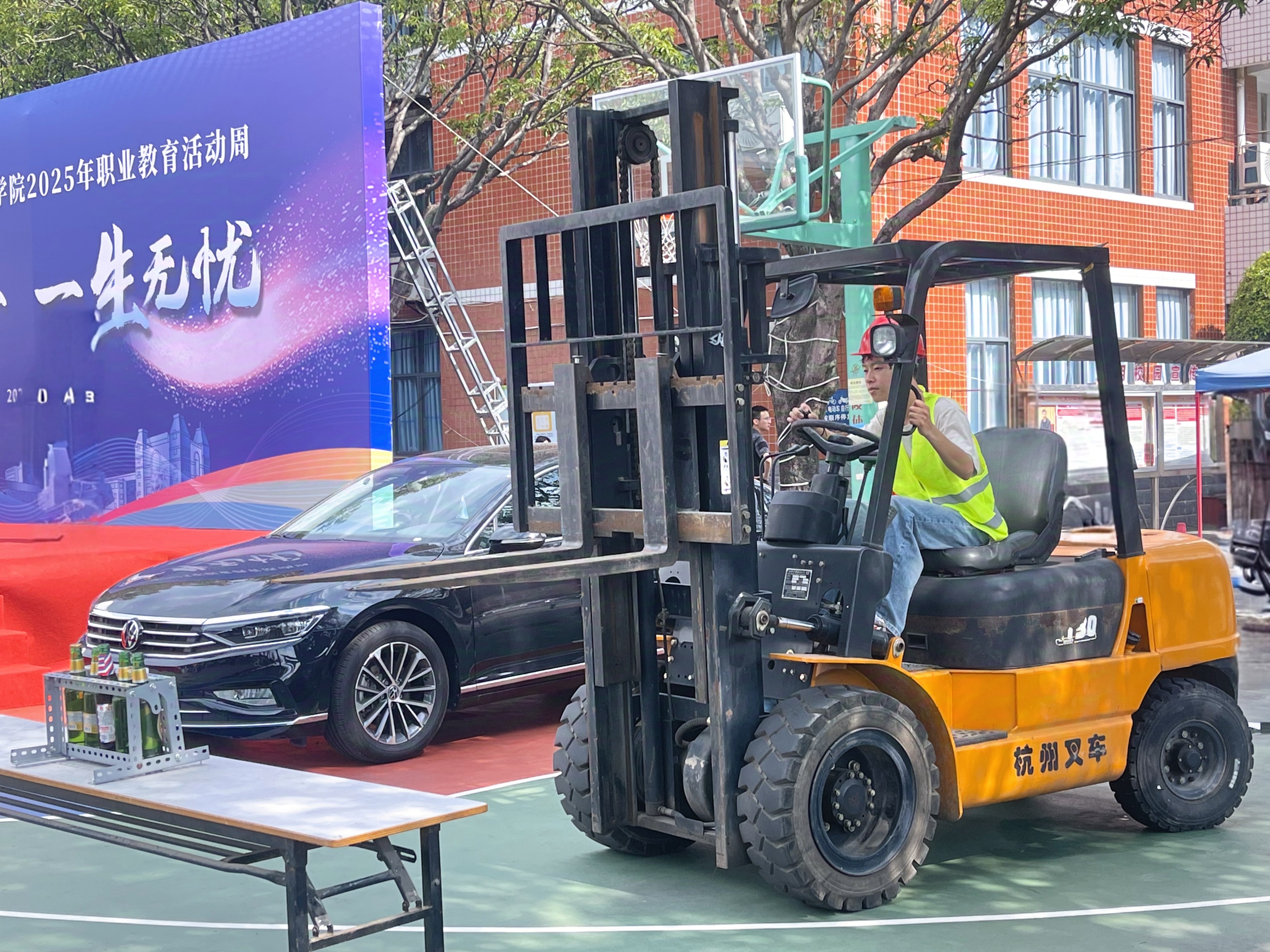 在校期間,他積極響應(yīng)技能提升號(hào)召,踴躍參與各類專業(yè)賽事:2024年斬獲工程機(jī)械營(yíng)銷賽項(xiàng)三等獎(jiǎng),2025年再攀高峰,先后摘得工程機(jī)械營(yíng)銷二等獎(jiǎng)、重型車輛電液系統(tǒng)維修二等獎(jiǎng)。此外,他還憑借扎實(shí)的實(shí)操功底,被選為學(xué)院代表,在2025年職業(yè)教育活動(dòng)周中亮相叉車表演項(xiàng)目,以行云流水的操作展現(xiàn)了新時(shí)代技能人才的風(fēng)采。