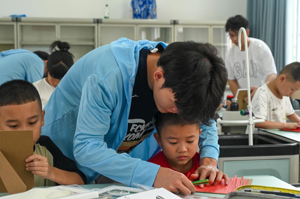 實(shí)踐團(tuán)成員們懷揣著高度的責(zé)任感與使命感,為小學(xué)中低年級(jí)留守兒童精心策劃了一系列覆蓋德智體美勞全面發(fā)展的課程。課程內(nèi)容不僅包含思想引領(lǐng)與文化傳承的深刻內(nèi)涵,還融入科技創(chuàng)新的探索樂(lè)趣、藝術(shù)素養(yǎng)的熏陶培育以及勞動(dòng)教育的實(shí)踐體驗(yàn)。這些精心打磨的課程,不僅為留守兒童們構(gòu)筑了一段既難忘又充實(shí)的“五彩五育”研學(xué)之旅,還讓他們?cè)跉g聲笑語(yǔ)中收獲知識(shí)、提升能力,原本平淡的暑期生活也因此煥發(fā)出別樣的光彩,如同被點(diǎn)亮的星辰,閃耀著成長(zhǎng)的光芒。