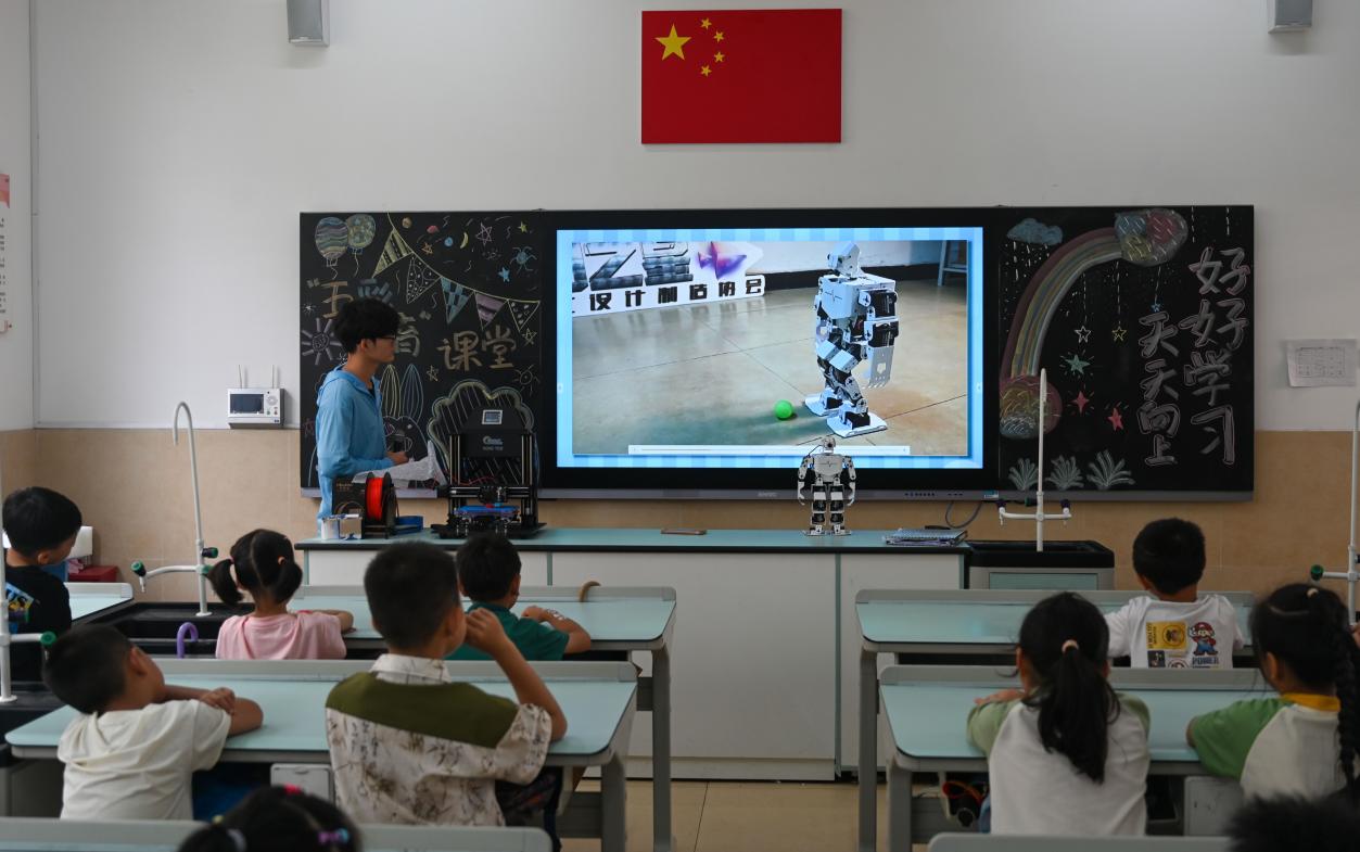 (實(shí)踐團(tuán)成員給小朋友們帶來(lái)的機(jī)器人演示課堂)