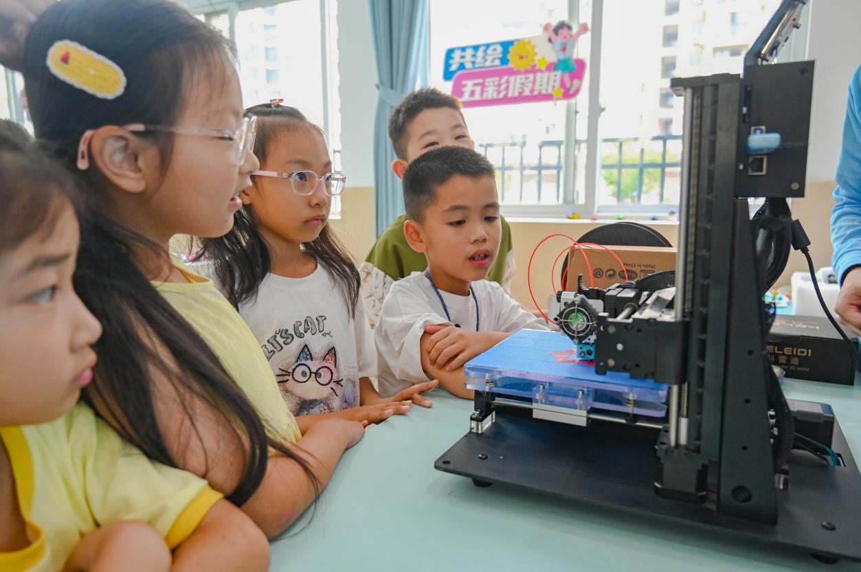 (實(shí)踐團(tuán)成員為小朋友展示3D打印制作過(guò)程)