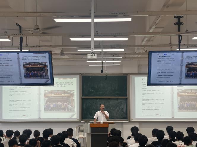 福建省勞模、福建省技能大師、寧德思客琦智能裝備有限公司制造中心總監(jiān)孫梓清作為企業(yè)代表,以“弘揚勞模工匠精神:平凡的工作崗位也能創(chuàng)造不平凡的人生”為主題,結合自身成長經(jīng)歷,闡述了在智能制造行業(yè)中腳踏實地、精益求精的重要性。并分享了三點體會,腳踏實地,筑牢專業(yè)根基;勇于實踐,參與項目與競賽;堅守匠心,追求卓越。他鼓勵同學們在今后的學習中,要樹立清晰目標,保持熱愛與專注,傳承工匠精神,追求卓越,將來成為推動行業(yè)進步的新一代工匠。