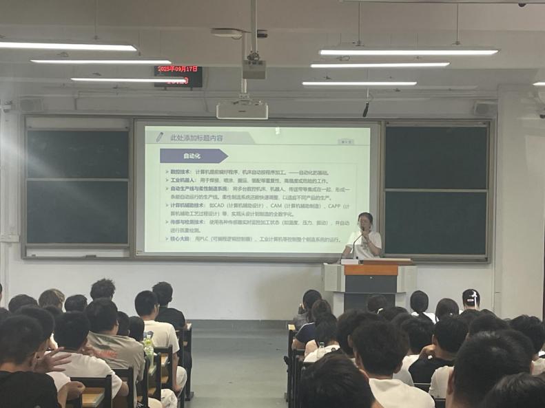 首先,機械制造教研室謝祖強老師結(jié)合當(dāng)前行業(yè)發(fā)展趨勢與專業(yè)特色,系統(tǒng)闡述了專業(yè)人才培養(yǎng)目標(biāo)、課程體系及核心技術(shù)方向,全面展示了專業(yè)實踐教學(xué)、師資力量、服務(wù)發(fā)展等方面的優(yōu)勢。他指出,該專業(yè)緊密圍繞區(qū)域制造業(yè)轉(zhuǎn)型升級,致力于培養(yǎng)“懂設(shè)計、精操作、會調(diào)試”,并具有一定創(chuàng)新精神與可持續(xù)發(fā)展能力的智能制造領(lǐng)域高技能人才。通過謝老師清晰而深入的講解,新生們對專業(yè)的核心內(nèi)涵與時代價值形成了直觀和全面的認(rèn)識。