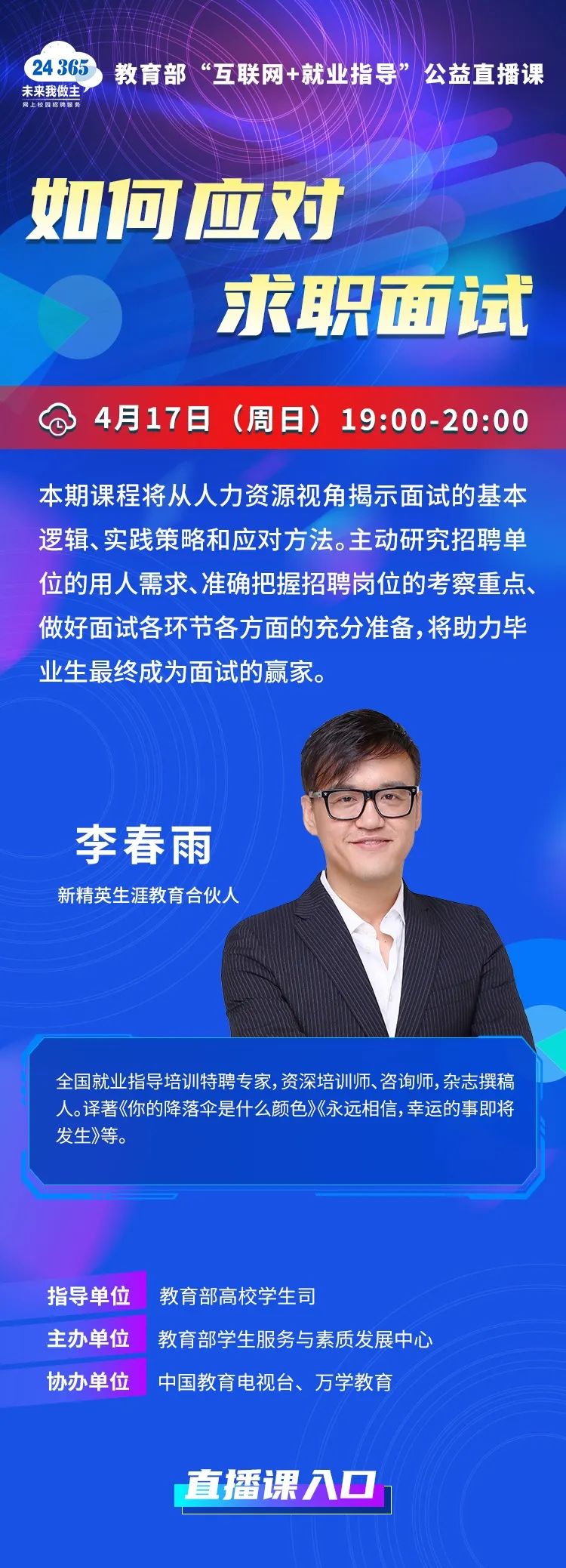 課程預(yù)告 | 教育部24365就業(yè)公益直播課:如何應(yīng)對(duì)求職面試