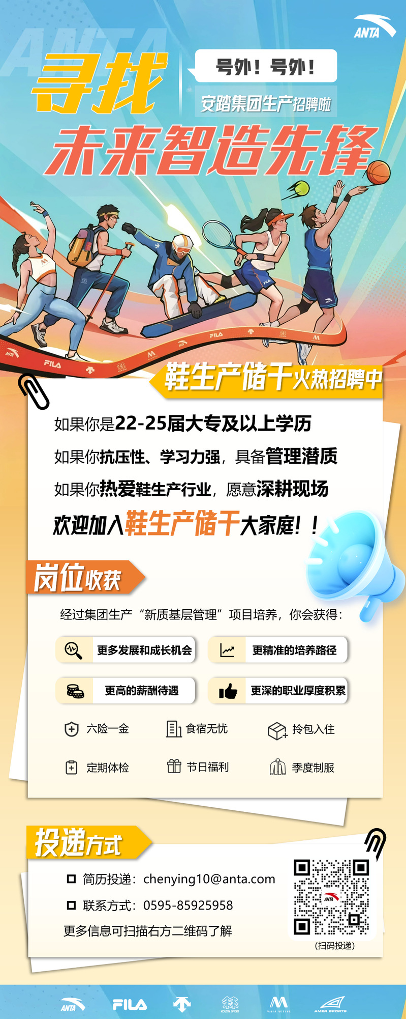 安踏集團創(chuàng)立于1991年,2007年在中國香港上市,是一家專門從事設(shè)計、生產(chǎn)、銷售運動鞋服、配飾等運動裝備的綜合性、多品牌的體育用品集團。截止2023年底,集團員工總數(shù)超6萬名,其中新吸納了超25000名高校畢業(yè)生及35歲以下年輕人才,間接創(chuàng)造超20萬個就業(yè)崗位。安踏集團堅持"單聚焦、多品牌、全球化”的發(fā)展戰(zhàn)略,旗下?lián)碛邪蔡?/span>ANTA(中國)、斐樂FILA(意大利)、迪桑特DESCENTE(日本)、可隆體育KOLON SPORT(韓國)等多個知名的運動品牌,全面滿足消費者的多元化需求。