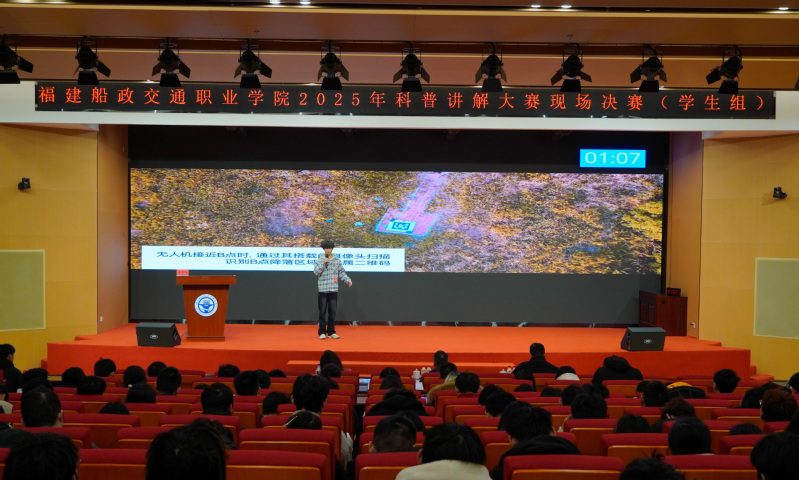 經(jīng)各二級學(xué)院遴選推薦、專家初審,共有8位教師,17名學(xué)生進(jìn)入現(xiàn)場比賽環(huán)節(jié)。比賽現(xiàn)場,選手們從自然科學(xué)、生態(tài)保護(hù)、信息技術(shù)、新能源等多個(gè)領(lǐng)域出發(fā),講述了“55顆衛(wèi)星的獨(dú)白”“實(shí)景三維””低空經(jīng)濟(jì)”“無人機(jī)的‘超能力’”“鯊魚喜歡吃人嗎?”等科學(xué)小故事,既聚焦科技前沿,又緊貼生活熱點(diǎn),充分運(yùn)用生動的語言和準(zhǔn)確的表達(dá),闡述科學(xué)原理,撥開奇妙現(xiàn)象背后的神秘面紗。