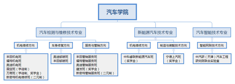 汽車學(xué)院秉承船政學(xué)堂“工學(xué)結(jié)合”的辦學(xué)理念和“精益求精、密益求密”的船政質(zhì)量觀,實(shí)施“基礎(chǔ)共享、特色分層、多元訂單、校企共育”的人才培養(yǎng)模式,與主流汽車品牌和大型汽車經(jīng)銷集團(tuán)合作,按照“大專業(yè)、小方向”的專業(yè)建設(shè)思路,對接福建汽車產(chǎn)業(yè)前、后端市場的發(fā)展需求,服務(wù)汽車新技術(shù)、新產(chǎn)業(yè)、新業(yè)態(tài)和新模式,開設(shè)有汽車智能技術(shù)、新能源汽車技術(shù)、汽車檢測與維修技術(shù)3個專業(yè)、6個方向。學(xué)生入學(xué)后可根據(jù)自身興趣特長和社會人才需求選擇校企合作的訂單培養(yǎng)方向: