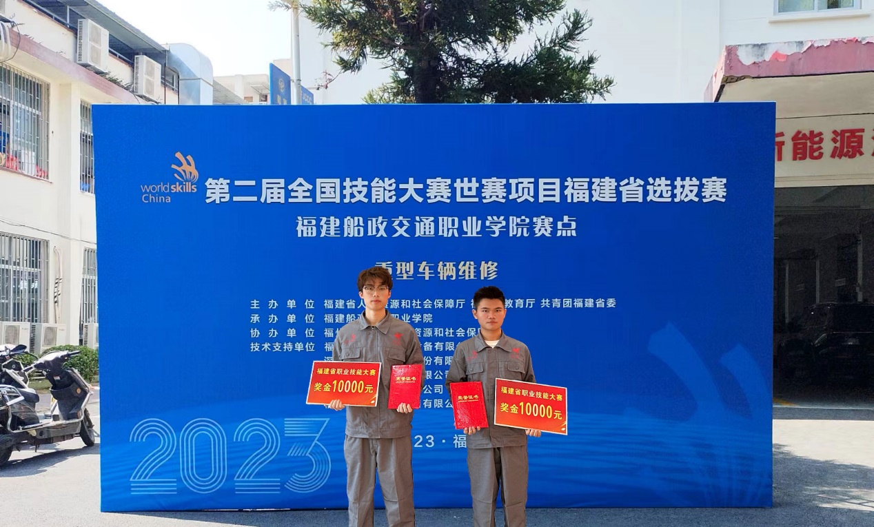 本屆大賽重型車輛維修項(xiàng)目,由福州市倉(cāng)山區(qū)人力資源與社會(huì)保障局協(xié)辦,福建船政交通職業(yè)學(xué)院汽車學(xué)院具體承辦,全省共8所院校和1家企業(yè)的16名選手在我校北區(qū)11號(hào)樓賽點(diǎn)展開(kāi)為期2天的競(jìng)賽角逐,最終我校21級(jí)新能源汽車技術(shù)4班的楊祺和楊振羽同學(xué)榮獲本賽項(xiàng)的金獎(jiǎng)和銀獎(jiǎng)。