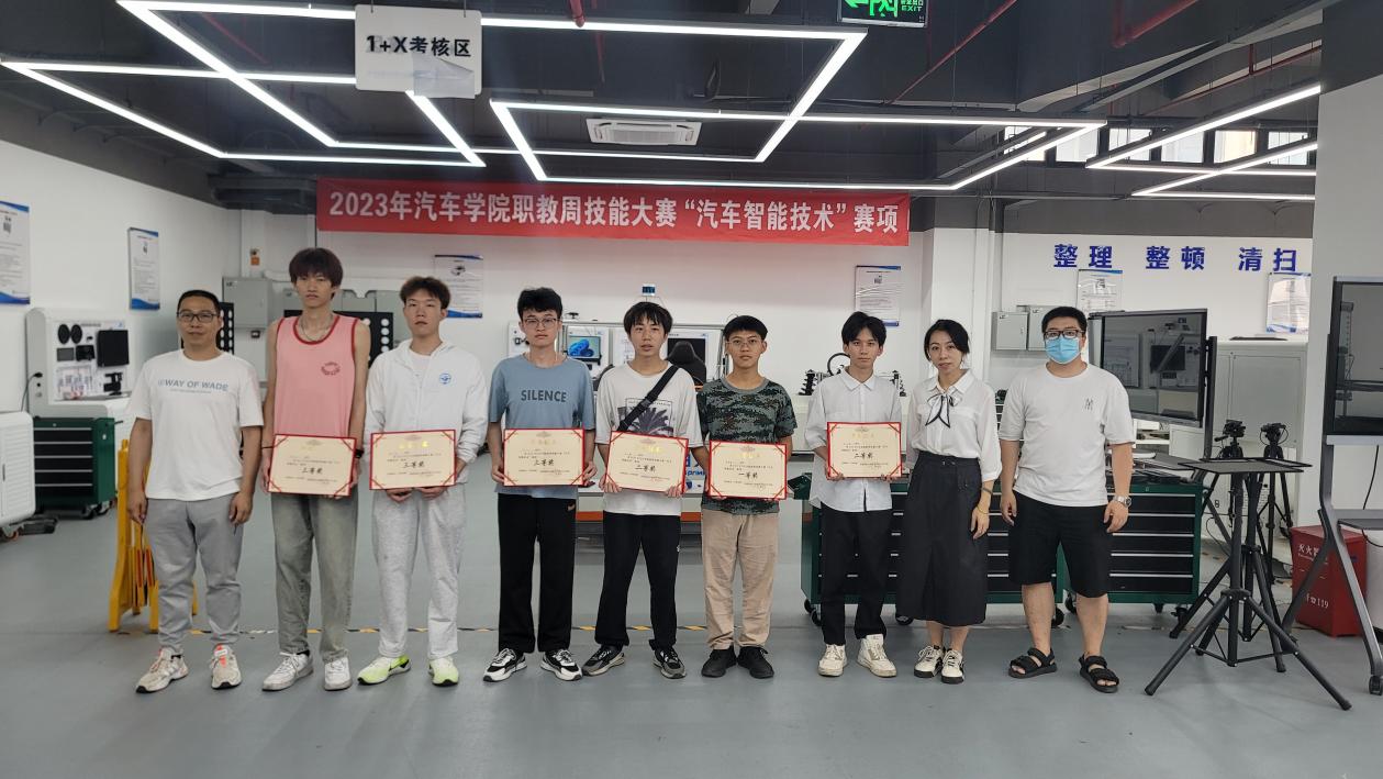 汽車智能技術(shù)專業(yè)教師為此次賽項得獎的同學頒獎