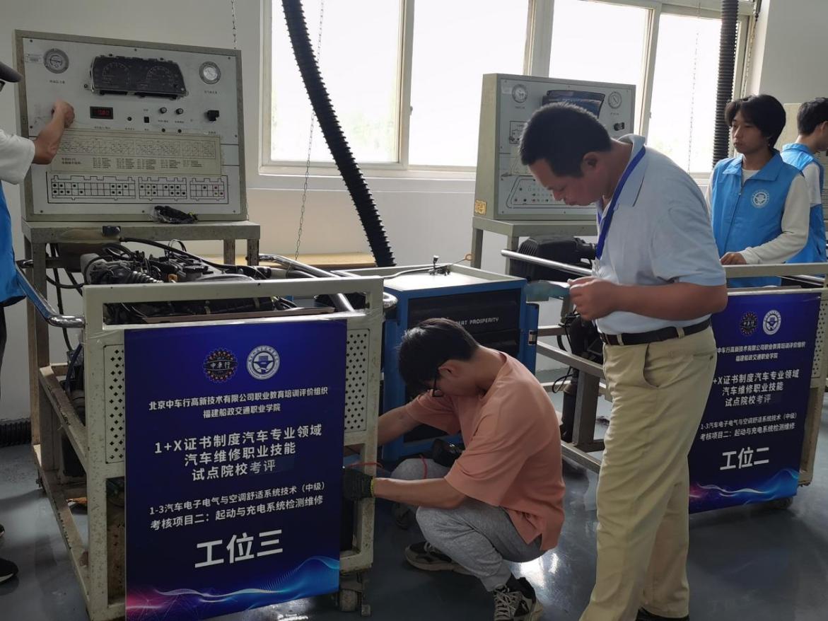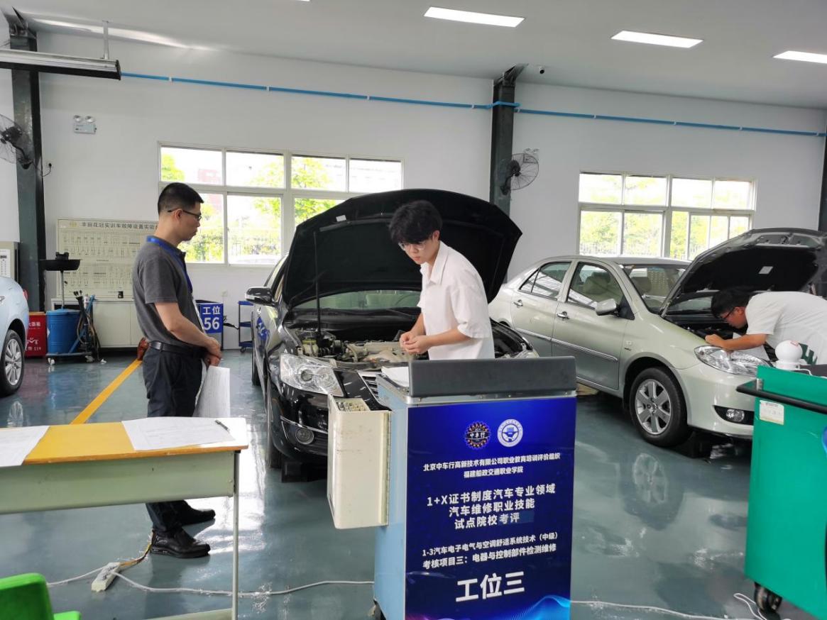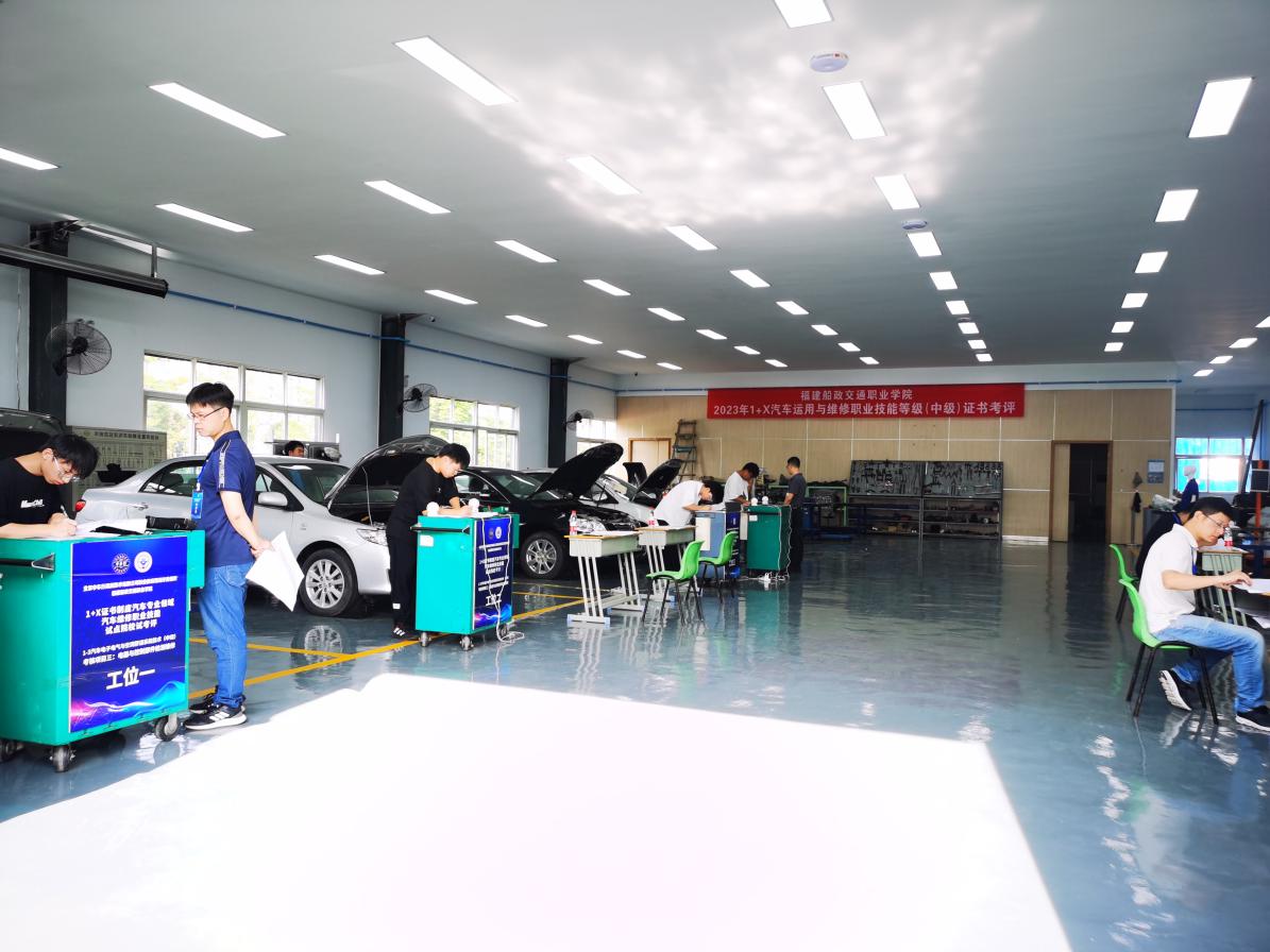 2023年6月25日,福建船政交通職業(yè)學(xué)院“1+X汽車運(yùn)用與維修”職業(yè)技能等級證書(中級)考核工作圓滿結(jié)束。此次考核4個(gè)項(xiàng)目分別在豐田實(shí)訓(xùn)室、吉利實(shí)訓(xùn)室和發(fā)動機(jī)電控實(shí)訓(xùn)室進(jìn)行。我院汽車檢測與維修技術(shù)專業(yè)共有40名學(xué)生參加了“1+X汽車運(yùn)用與維修”證書考核。
