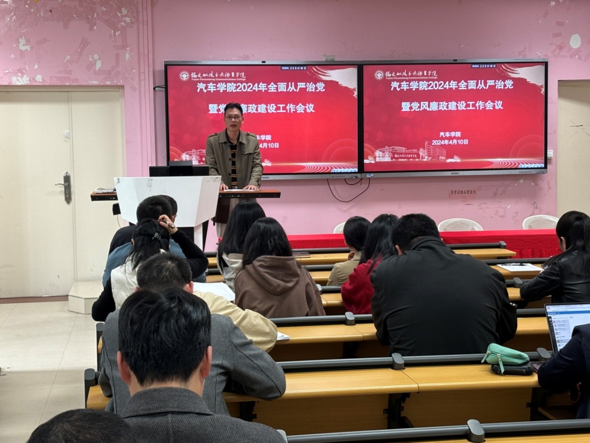 4月10日,汽車學(xué)院召開(kāi)2024年全面從嚴(yán)治黨暨黨風(fēng)廉政建設(shè)工作會(huì)議。