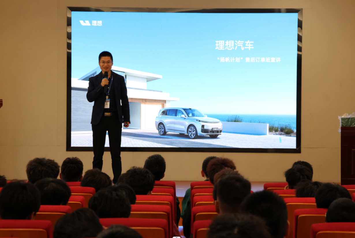理想汽車(chē)售后校企合作經(jīng)理李磊重點(diǎn)闡述了訂單班的獨(dú)特課程體系,包括理論與實(shí)踐的課程要求以及嚴(yán)格的考核標(biāo)準(zhǔn)。此次宣講會(huì)使學(xué)生更加了解了行業(yè)企業(yè)前景與發(fā)展,引起了同學(xué)們的廣泛關(guān)注,同學(xué)們十分期待未來(lái)能加入這個(gè)充滿(mǎn)活力和機(jī)遇的企業(yè)。共有100余名學(xué)生積極報(bào)名,通過(guò)現(xiàn)場(chǎng)面試,校企雙方最終選拔確定了50名優(yōu)秀的同學(xué)進(jìn)理想汽車(chē)“揚(yáng)帆計(jì)劃”2026屆訂單班。